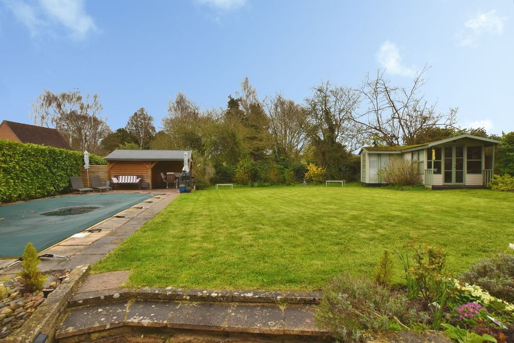 Externally, the rear garden is of excellent size and thoughtfully landscaped, predominantly laid to lawn with well-stocked borders providing seasonal colour and interest. A swimming pool, set within a paved surround, is positioned to one side, while a timber pergola creates a sheltered seating area—perfect for relaxing and entertaining within this exceptional setting.