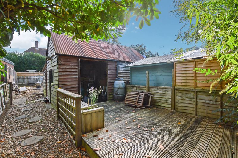 The rear garden is extensive and has a patio area to the immediate rear, ideal for alfresco dining in the summer months and then the remainder is laid to lawn stretching down to the rustic decked area with large storage shed behind. The garden is completely enclosed and East facing.