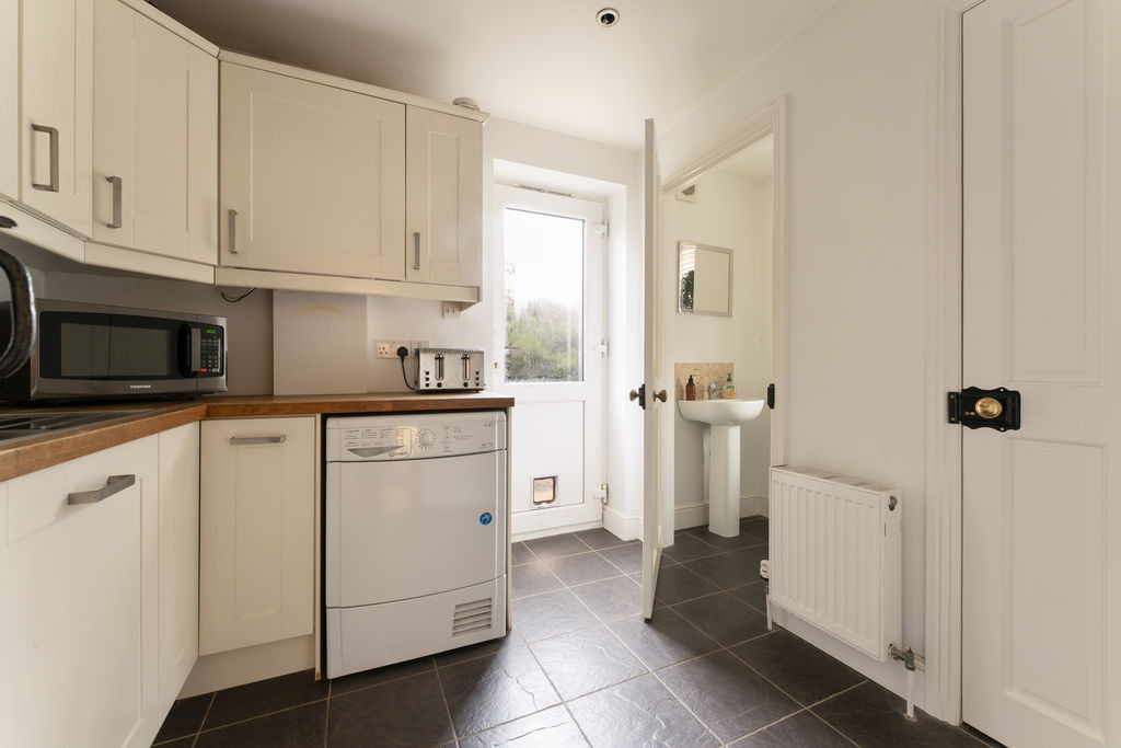 An exposed brick opening leads through to the snug, enhancing the sense of flow and character. A well-appointed utility room provides additional storage, work surfaces, and appliance space, along with access to the side of the property. A ground floor cloakroom completes the accommodation at this level.